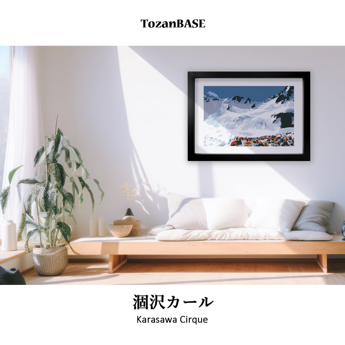 日常の中でも山小屋の窓辺が感じられるよう、その景色をアートとして切り取りました。